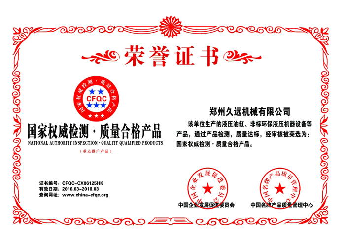 質(zhì)量合格榮譽證書