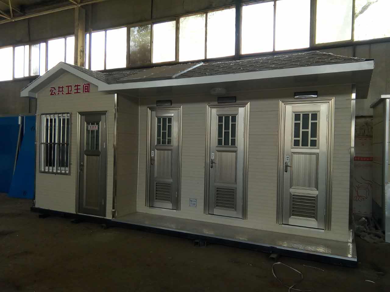 移動(dòng)廁所簡介及制作方法:1、房體結(jié)構(gòu): 采用輕鋼龍骨結(jié)構(gòu),鋼材全部使用標(biāo)準(zhǔn)鍍鋅鋼材。根據(jù)房體的大小特選用國標(biāo)方管(50-100)焊接而成。鍍鋅管厚度為2.8mm,方管經(jīng)過除銹后進(jìn)行鍍鋅、防腐處理,這樣就會(huì)延長廁所使用壽命.2、墻體: 墻板采用金屬雕花板,金屬雕花板是保溫、隔熱、環(huán)保、阻燃、防雨、防凍、隔音、抗震等...